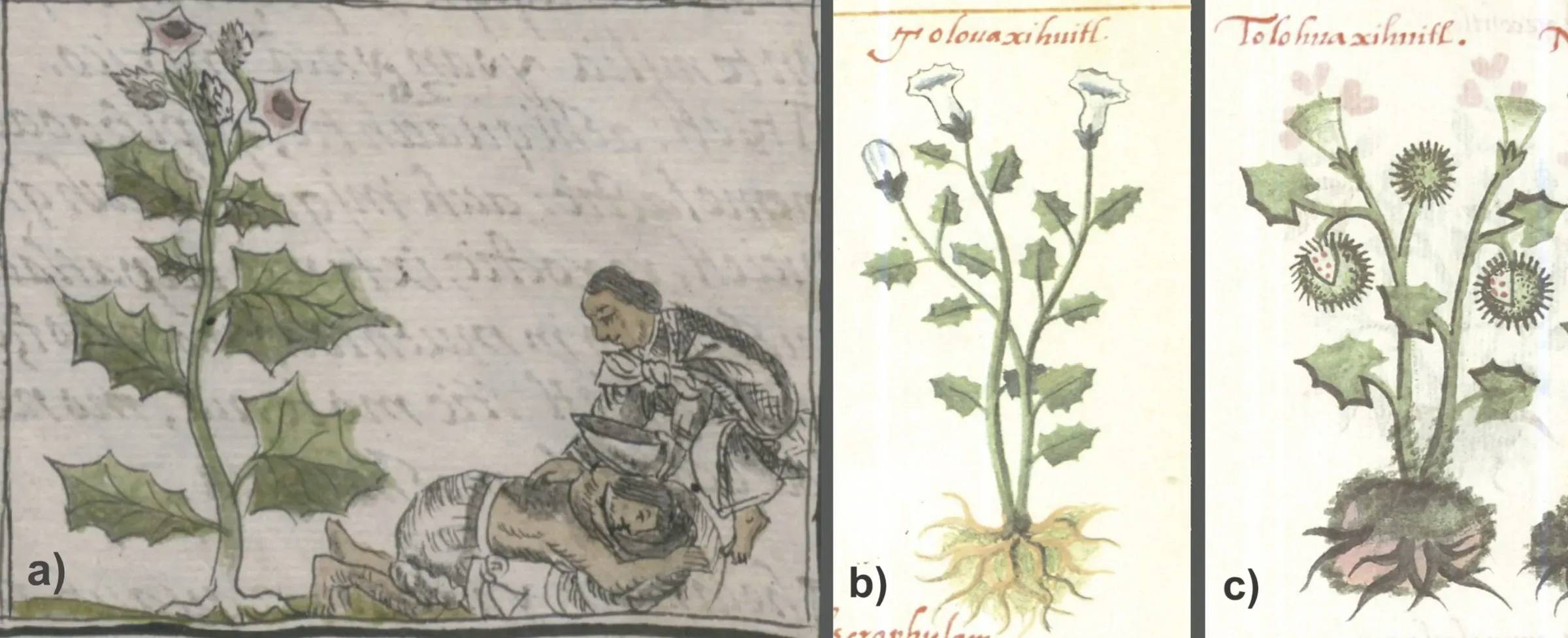 Because of their abundance, many pre-Columbian cultures across Mesoamerica incorporated these mushrooms into healing rites, divination, and religious ceremonies. [2] Archaeological evidence suggests their use extends back roughly 3,500 years. [3] The 16th-century chronicler Fray Bernardino de Sahagún recorded their effects: “They cause drunkenness…Those who eat them see visions…sometimes frightening and sometimes humorous.” Today, their ceremonial use survives most prominently among the Mazatec, where Indigenous tradition and Catholic symbolism have fused into a unique syncretic practice. Peyote (Mescaline)Peyote is a small, spineless, button-like cactus packed with mescaline—along with more than 60 other alkaloids—which together produce long-lasting, vividly colorful, geometry-warping visions, heightened sensory perception, and powerful spiritual or out-of-body experiences. [4] It’s also one of the oldest ritual psychedelics in the Americas, with archaeological evidence stretching back over 5,000 years. Peyote remnants have been found in Cuatro Ciénagas, Coahuila, Mexico, and in Shumla Cave in Texas, confirming its prehistoric use. [5] Multiple pre-Columbian cultures used it, including the Olmec, Zapotec, Maya, and Aztec. Fray Bernardino de Sahagún recorded its effects in the 16th century: “There is another herb like mountain prickly pear, named peiotl… Those who eat or drink of it see terrifying or absurd visions; this inebriation lasts two or three days… it is sustaining and spurs them to fight with no thought of fear, thirst, or hunger, and they say that it protects them from all danger.” During the Inquisition, the Spanish fiercely suppressed peyote ceremonies, and by 1720, its use was officially banned. But peyote survived. It remains central to the spiritual traditions of the Tarahumara and Huichol of northern Mexico, as well as the Navajo, Comanche, and members of the Native American Church in the United States and Canada—used in vision quests, healing rites, and ceremonies meant to communicate with the spirit world. Ololiuqui (LSA)Ololiuqui refers to the seeds of the morning glory Turbina corymbosa, which contain LSD-like alkaloids—most notably d-lysergic acid amide (LSA), the primary psychoactive compound—along with several others that shape its visionary effects. [6] The Aztec, Maya, Mixtec, and Zapotec peoples used these seeds to alter perception and enter trance-states for healing, diagnosis, and divination. Unlike communal peyote or mushroom ceremonies, ololiuqui was typically taken privately with a healer, making it an intimate, diagnostic form of medicine. And the pharmacology aligns with the tradition: LSA, though structurally similar to LSD, produces a more sedating, inward-turning experience. It's often described as lucid, dreamlike, and introspective, with visual trails, color shifts, brightened lights, and soft, hazy imagery. [7] The conquistador Juan de Cárdenas described ololiuqui intoxication as follows: ‘‘…when taken by mouth, will cause the wretch who takes them to lose his wits so severely that he sees the devil among other terrible and fearsome apparitions; and he will be warned (so they say) of things to come, and all this must be tricks and lies of Satanas, whose nature is to deceive..." Today, these seeds—along with other LSA-containing species like Ipomoea violacea and Hawaiian Baby Woodrose (Argyreia nervosa)—are often used recreationally as a so-called “legal high.” [0] Pipiltzintli (Salvia divinorum)Known as Pipiltzintli by the Mazatec people of Oaxaca, Salvia divinorum is a visionary plant from the mint family (Lamiaceae). Its active molecules—especially Salvinorin A—make it the most potent naturally occurring hallucinogen known, with powerful effects at doses as low as 200 micrograms [8,9], roughly 100× stronger by weight than psilocybin mushrooms. But salvia is fundamentally different from classic psychedelics like psilocybin, LSD, LSA, DMT, or mescaline. Instead of acting on serotonin (5-HT2A) receptors, Salvia divinorum activates the kappa-opioid receptors (KOR), producing its distinct, dreamlike, and often disorienting effects. [10] Importantly, those intense breakthrough states only occur when salvia is smoked, a modern practice. Traditionally, Mazatec shamans chewed the fresh leaves [11], which creates a far gentler, more meditative, and deeply introspective state rather than full dissociation. This softer, inward-turning effect is what made it a revered tool in divination (hence the name, "divinorum"). Bufo (5-MeO-DMT)Bufo refers to the venomous secretion of the Sonoran Desert toad (Bufo alvarius), a milky defensive toxin loaded with 5-MeO-DMT—one of the most powerful psychedelics on Earth—along with bufotenin. [12] Chemically, it’s a close relative of DMT, the active molecule in Ayahuasca. But the experience is nothing like DMT’s hyper-visual, kaleidoscopic journeys. 5-MeO-DMT is far less visual and far more deconstructive, driving the user into total ego dissolution, pure presence, and what many describe as “merging with infinity.” [13] Archaeological evidence suggests that the Olmec used the secretions (and even the dried skins) of Bufo species in ceremony—smoked, eaten, or mixed into alcoholic drinks—to enter trance states. Countless toad remains discovered in ritual contexts alongside Olmec priests point to its role as a sacrament. Toloache (Datura)Toloache was the name given to Datura stramonium, a plant in the nightshade family commonly called the “devil’s herb” throughout Mesoamerica. Despite its ominous reputation, it occupied a powerful place in ritual and healing traditions. Indigenous peoples across northern Mexico and the southern United States used it as medicine, a diagnostic oracle to reveal the roots of illness, an initiatory gateway in puberty rites, and even as an aid in hunting. But unlike other hallucinogenic plants that expanded awareness or clarified